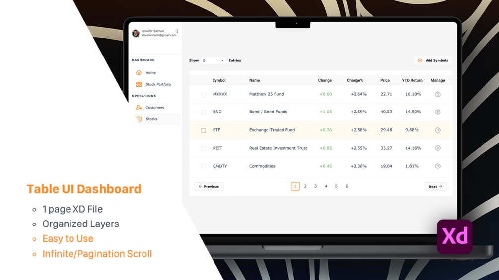 Table UI Design Template (Adobe XD File)